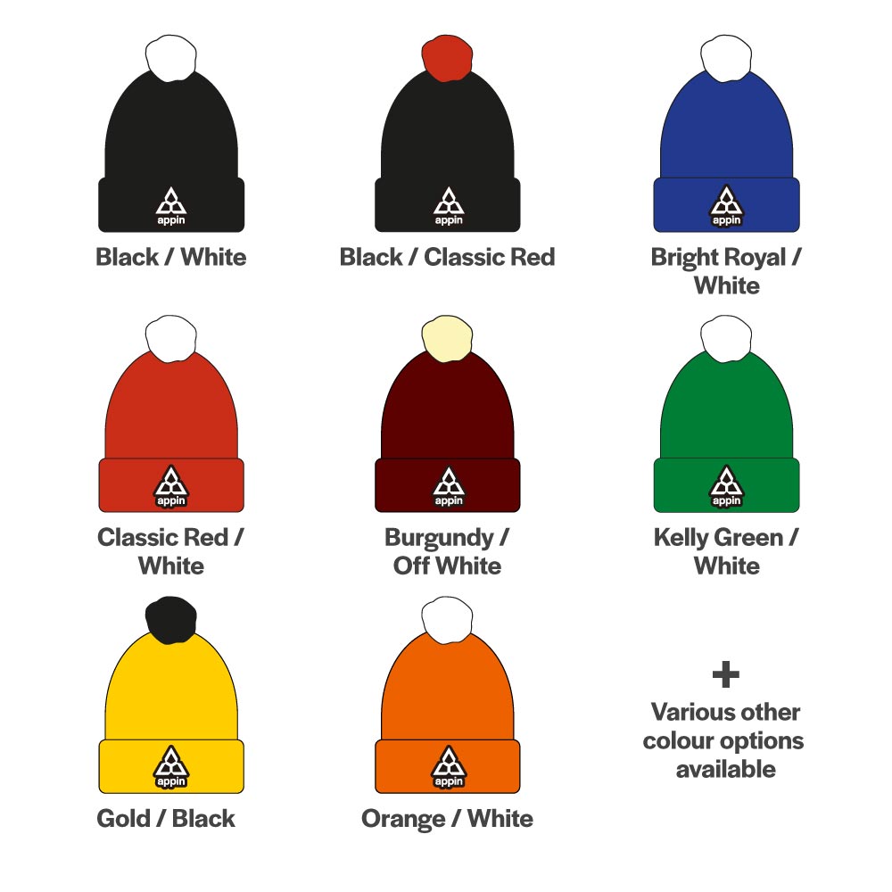 Great value branded bobble hats for your team, club, event or organisation. Choose from a range of classic colour combinations, add your team name or an embroidered club badge at no extra charge.